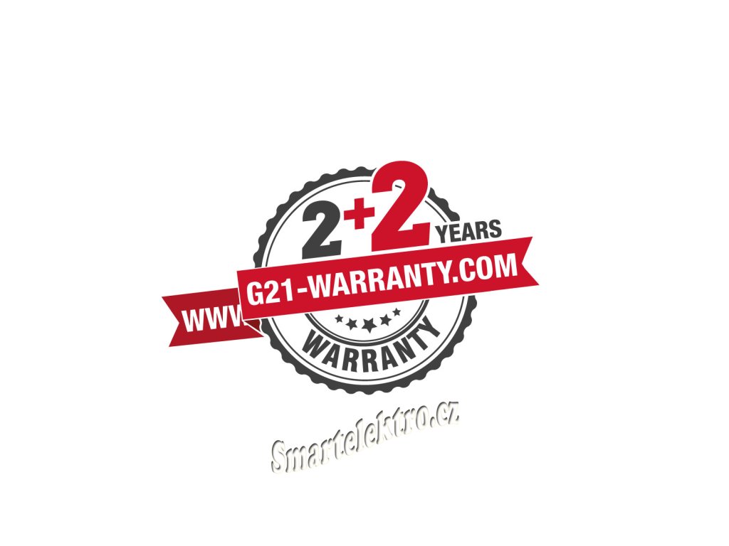 Za kvalitu tohoto produktu ručíme 4 roky. Ke standardní záruční lhůtě 2 roky získáte registrací na webu http://g21-warranty.com prodloužení záruky o další 2 roky. Využijte tuto možnost a po koupi se zaregistrujte. Prodloužená záruka 2 + 2 roky se vyplatí!