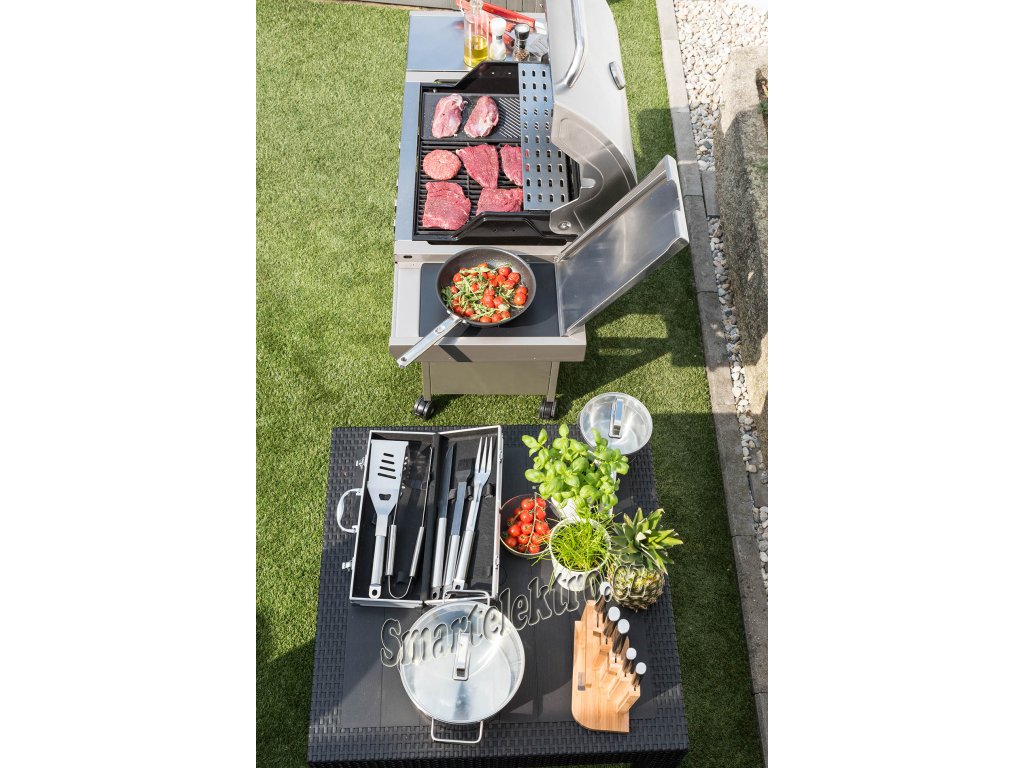 Tato profesionální sada 18ks nářadí, obsahuje vše potřebné pro správné grilování i následnou údržbu grilu.