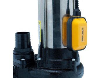 Kalové čerpadlo Nerezové tělo Max. průtok 14 500 l/h Max. hloubka ponoru 7 m Max. výtlak 9 m Max. velikost pevných příměsí 25 mm Délka přívodního kabelu 10 m, plovákový spínač