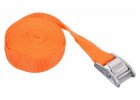 Praktický upínací popruh s kovovou sponou, který najde široké uplatnění při upevňování předmětů.