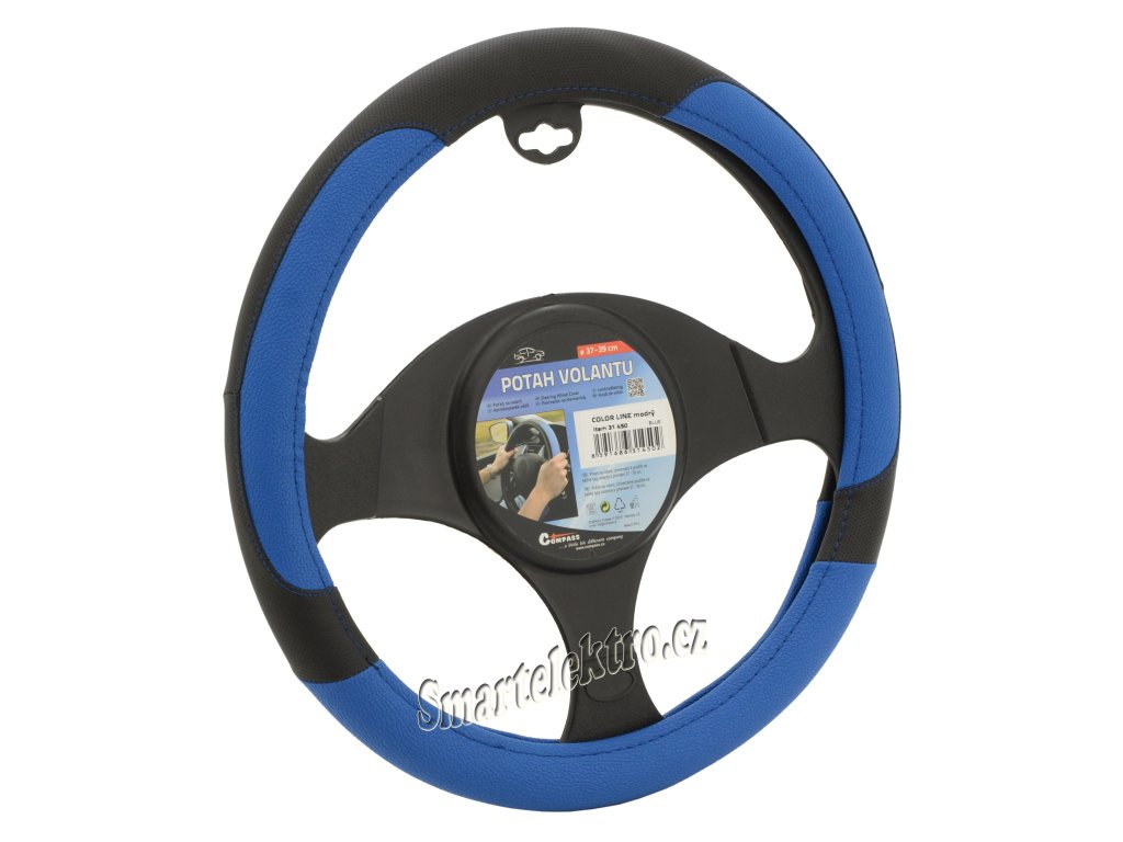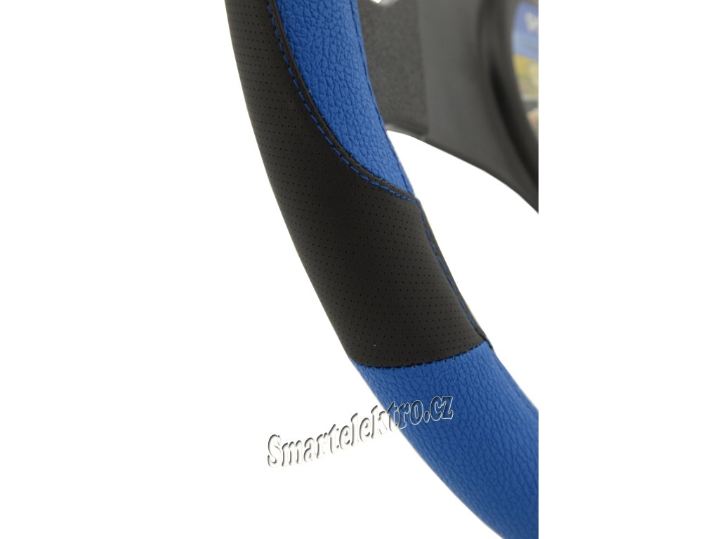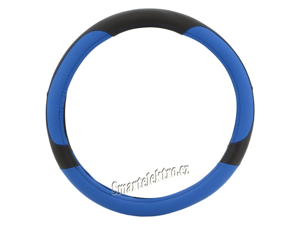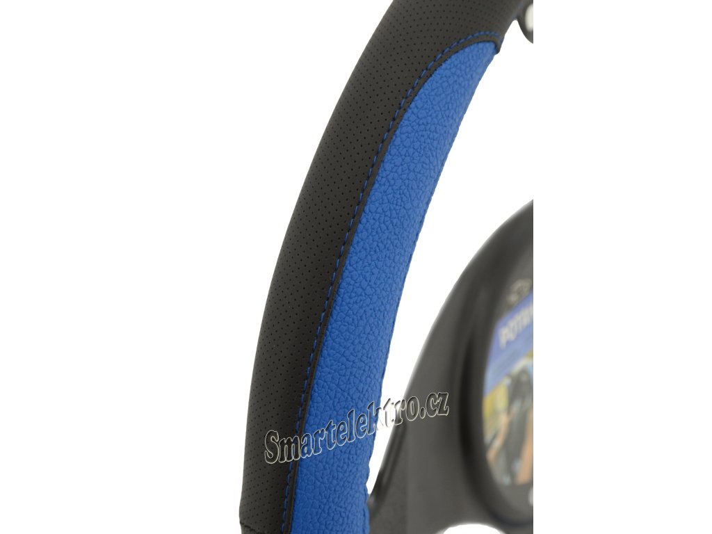 Potah určený k nasazení na volant o průměru 37-39cm.Černé provedení s modrými doplňky a s elegantním vším modrých nití.