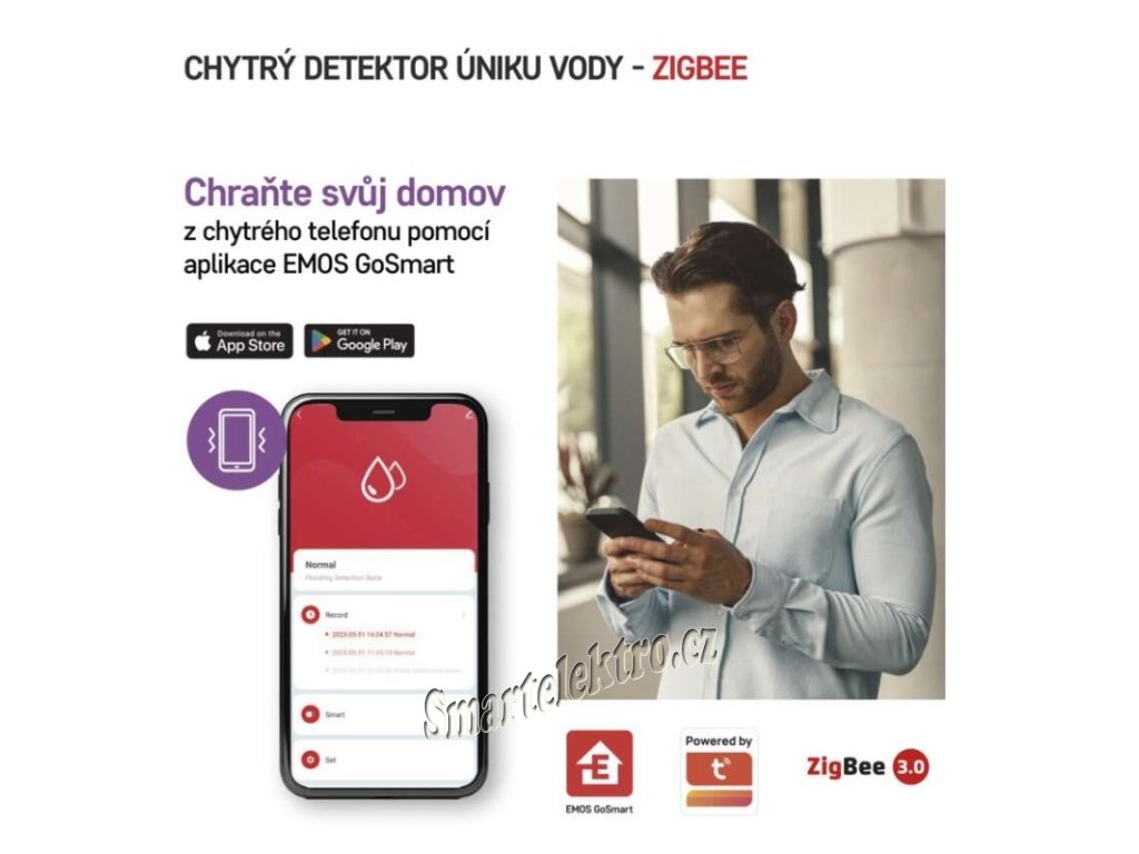 Ovládání pomocí mobilní aplikace TUYA přes chytré telefony nebo tablety (iPhone, Android). Okamžité upozornění v aplikaci v případě úniku vody.
