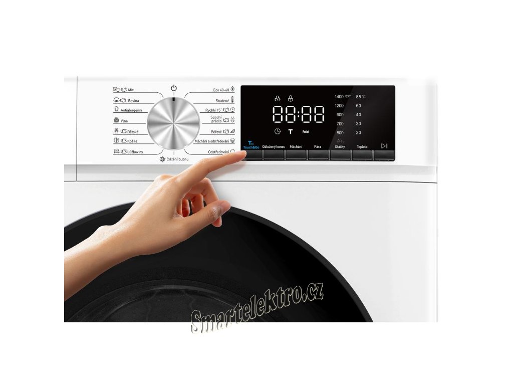 Automatická pračka s párou, náplň 8 kg, 1400 ot./min, 15 programů, invertor, můj oblíbený program, alergický s párou, energetická třída A, rozměry VxŠxH: 85x60x51 cm