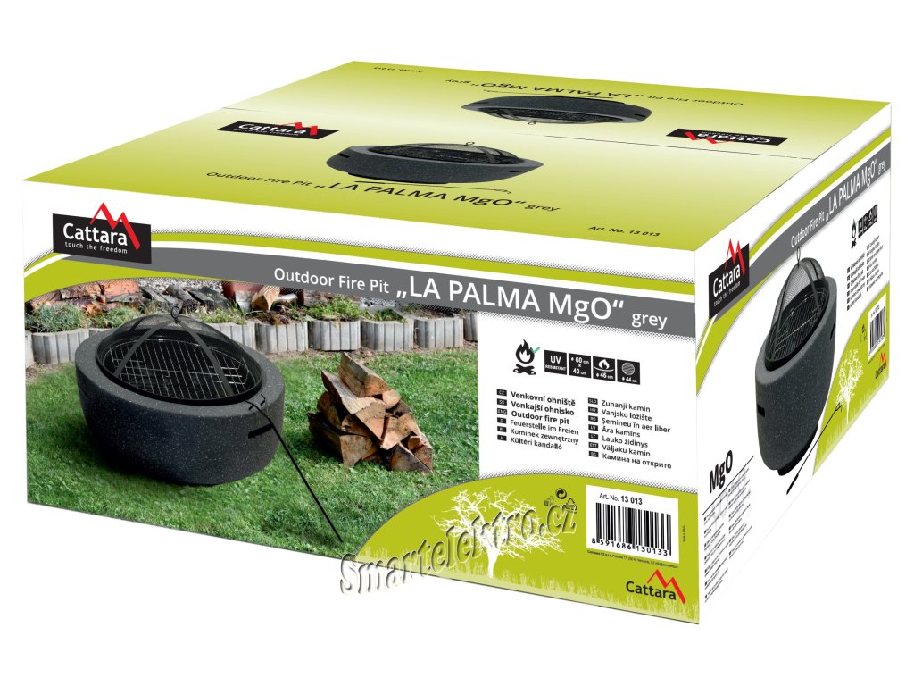 Přenosné ohniště na dřevo LA PALMA v šedém MgO provedení vhodné na terasy a zahrady.