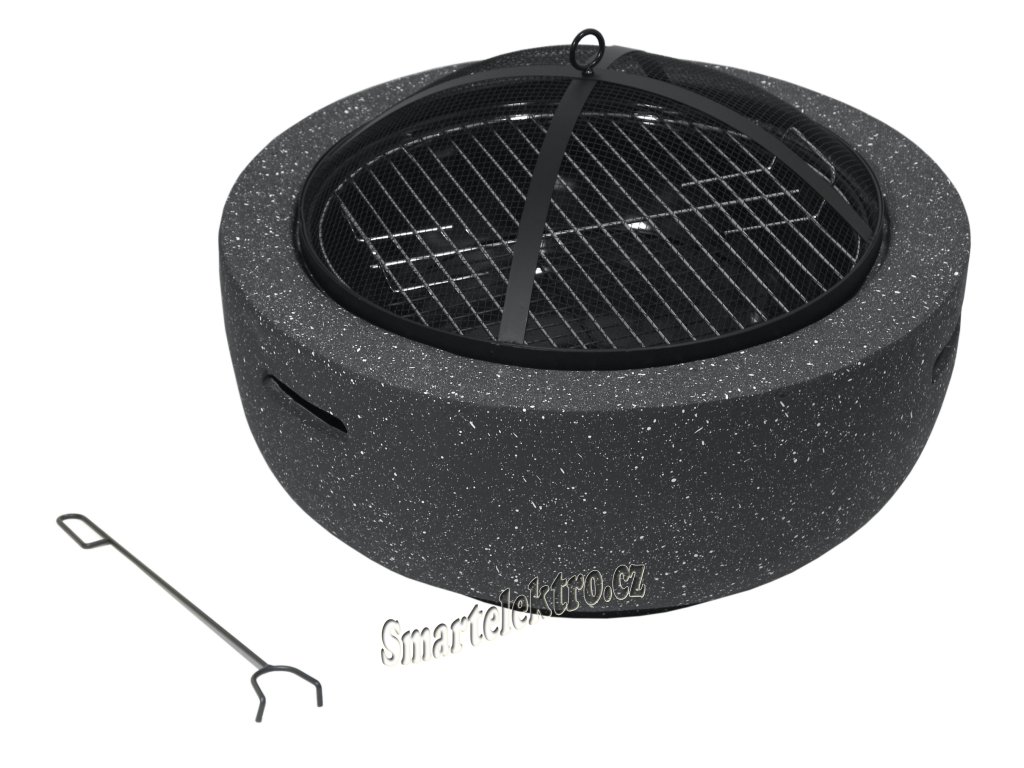 Speciálně tvarovaný poklop s pletivem poslouží jako ochrana před jiskrami, což výrazně zvyšuje bezpečnost a pohodlí. K ohništi je navíc přiložen i praktický pohrabáč na uhlíky.