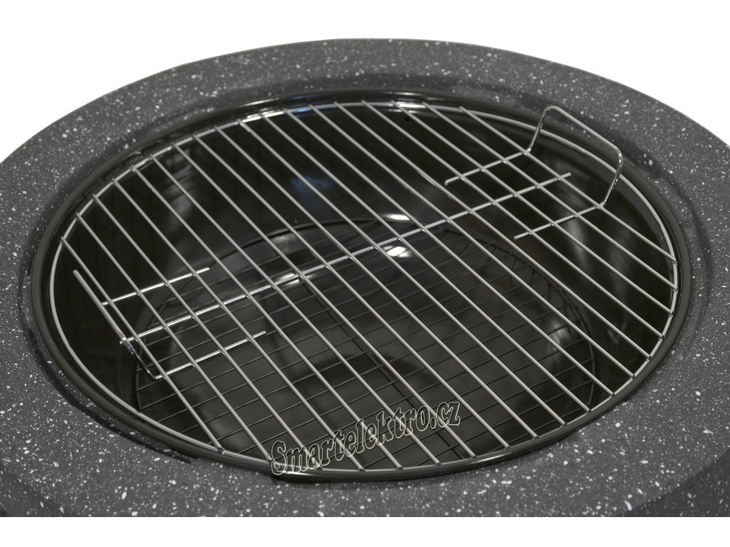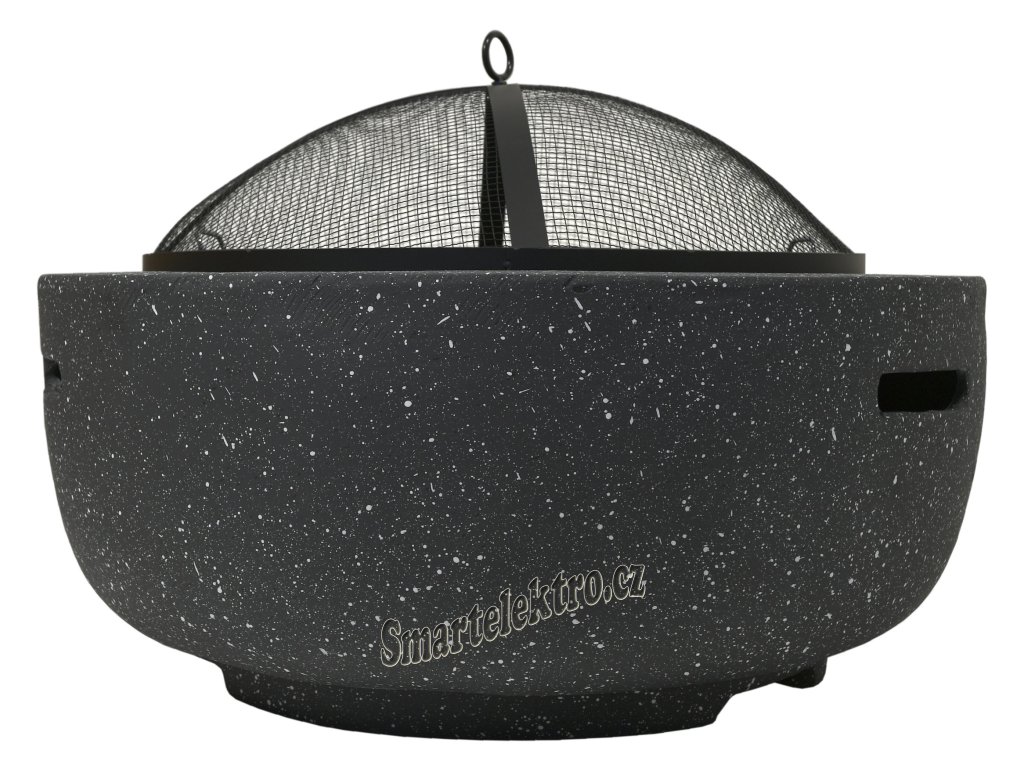 Vnitřní část ohniště je vyrobena z kvalitní oceli s vysokoteplotním černým nátěrem uložené v pevném a teplotě odolném těle z páleného kamene z Oxidu Hořečnatého. Pro grilování je ohniště opatřeno ocelovým roštem průměru 44 cm.