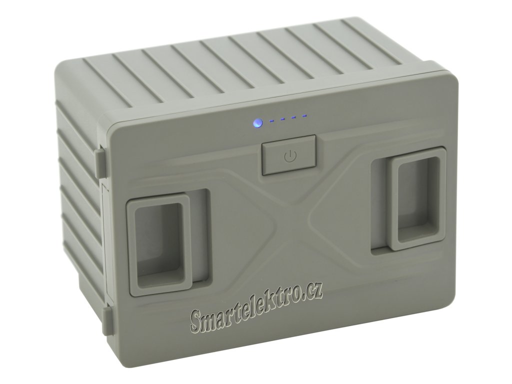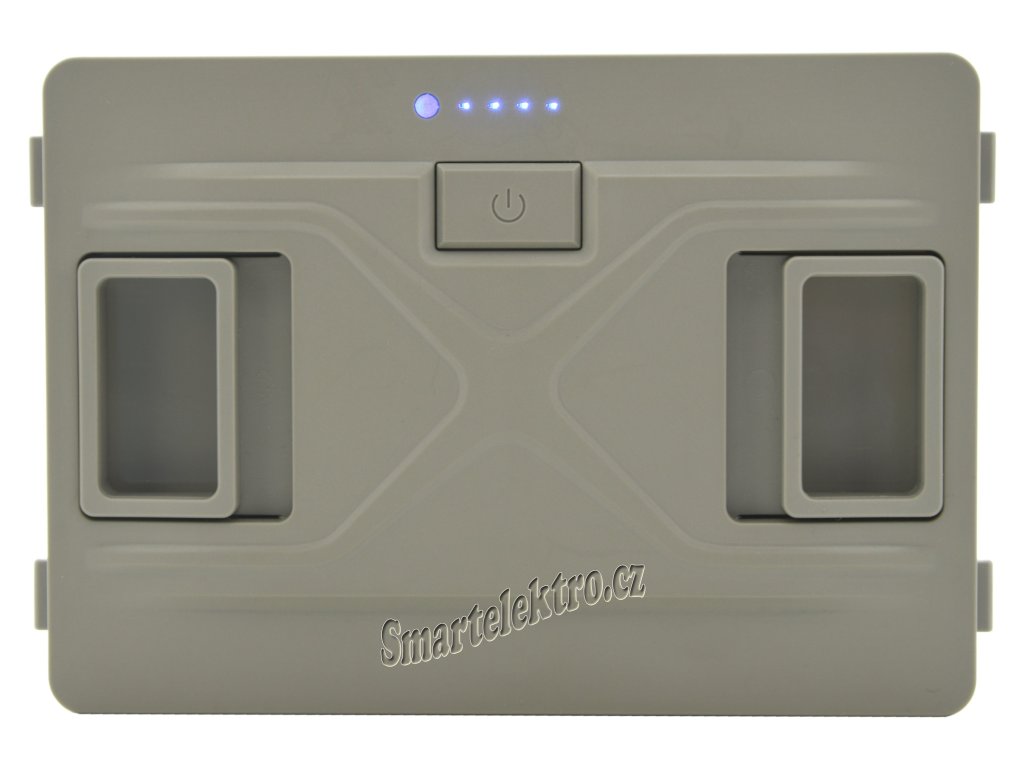 Baterie je na čelní straně opatřena spínačem pro zapnutí a vypnutí napájení se signalizací stavu nabití a barevnou indikací nabíjení/vybíjení.