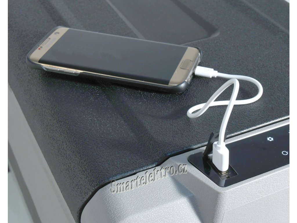 Vnější plášť je proveden z odolného plastu šedé barvy, který spolu s perfektní PU izolací zajišťuje dlouhodobé zachování stabilní teploty uvnitř boxu a zaručuje velmi nízkou spotřebu energie. Okraj ovládacího panelu je doplněn o krytou USB zásuvku pro napájení zařízení s USB konektorem.