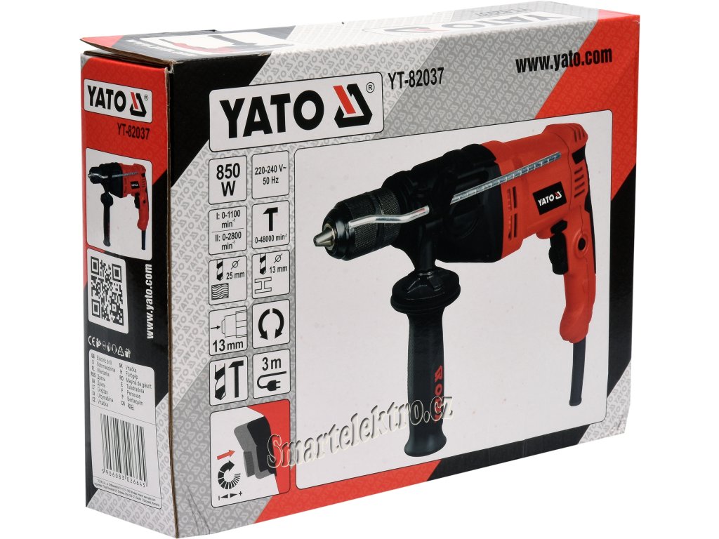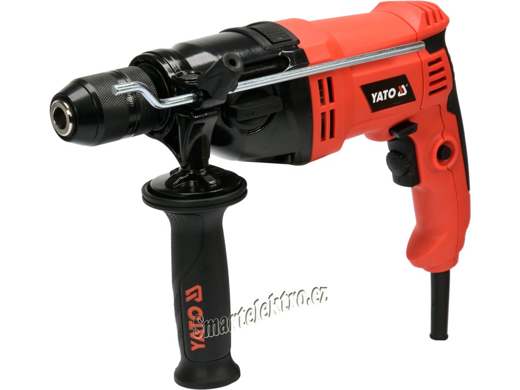 Profesionální příklepová vrtačka značky YATO o výkonu 850 W (max. 2800 otáček / max 48000 příklepů za minutu).
