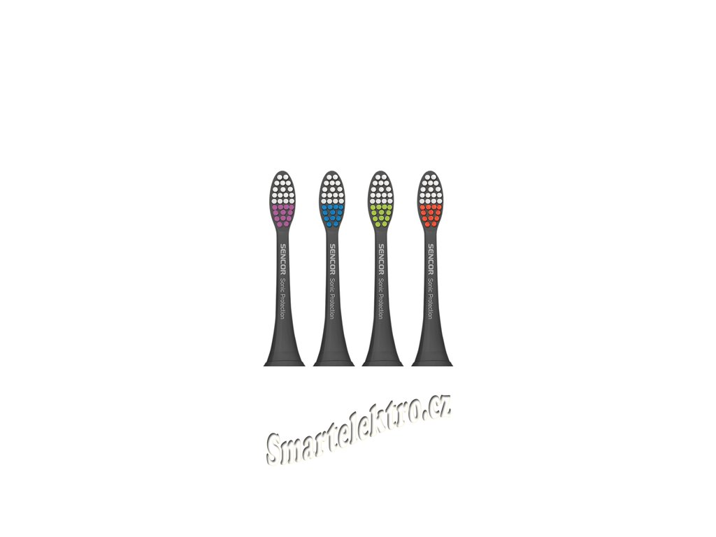 Tvar W pro simultánní čištění dvou zubů Díky speciálnímu zastřižení čistících štětin do tvaru písmene W se čistící síla ideálně rozprostře mezi dva zuby najednou. Zastřižení zároveň zaručuje vyčištění i běžně velmi těžko dosažitelných prostor mezi zuby. 4 kusy v kompaktním balení Kompaktní balení obsahuje 4 kusy kartáčových hlav. Jednotlivé hlavice mají různou barvu štětin pro jednoduchou identifikaci. Odstraňuje více plaku než ruční kartáček Tvar štětin a sonická technologie kartáčku SENCOR zbavují zuby zubního plaku mnohem efektivněji než při čistěním manuálním kartáčkem. Každý jednotlivý zub je při správním čištění setřen více než 2 500 krát. Velice jednoduchá výměna Nasazovací konstrukce kartáčku zaručuje jednoduchou výměnu a obsluhu i při opakované výměně náhradních hlavic. Vhodné pro každodenní čistění Hlavice je uzpůsobena pro každodenní používání díky jemným vláknům, které podporují regeneraci dásní a pomáhají s prevencí zubních onemocnění. Kompatibilita Hlavice SENCOR Sonic Protection jsou kompatibilní se všemi kartáčky SENCOR Sonic Protection SOC 1x, 2x i 3x.