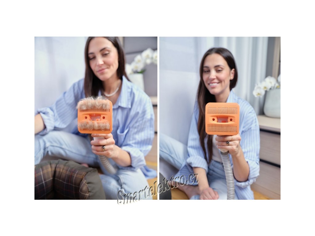Pro ty, co mají mazlíčky neustále po svém boku – rychle a efektivně odstraní chlupy z oblečení před odchodem z domu. Skvělou vychytávkou je, že po otočení se chlupy odsají do nádoby vysavače, můžete tak skoncovat s lepicími válečky.