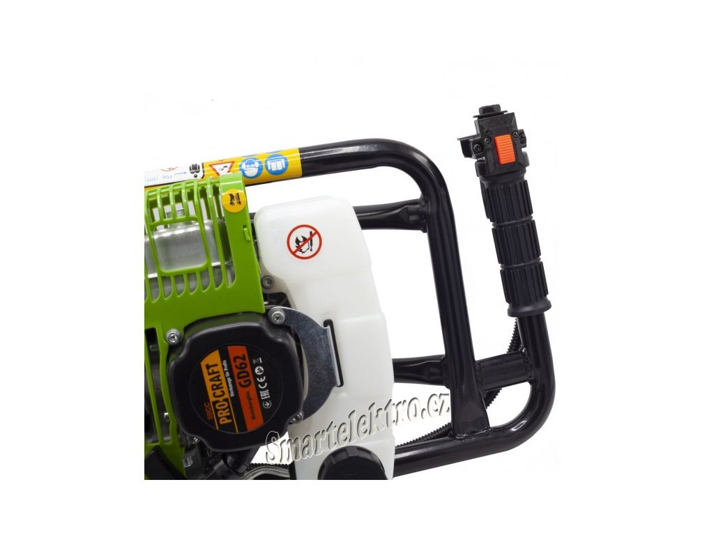 Zemní vrták Procraft GD62 je robustní a spolehlivé nářadí určené určený pro efektivní vrtání v zemním prostředí. Díky dvoutaktnímu vzduchem chlazenému motoru a ručnímu starteru je tento vrták ideální pro práce na venkově nebo v zahradách, kde je potřeba vyvrtávat otvory pro sloupy nebo sázení rostlin.