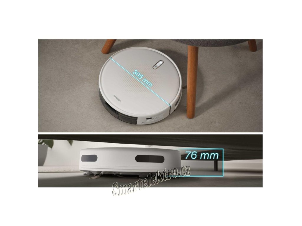 Robotický vysavač Sencor SRV 1550WH, velmi tenký, inteligentní navigace, aku (Li-Ion) napájení, objem prachové nádoby 0,2 l, současně vysává a stírá, systémy...