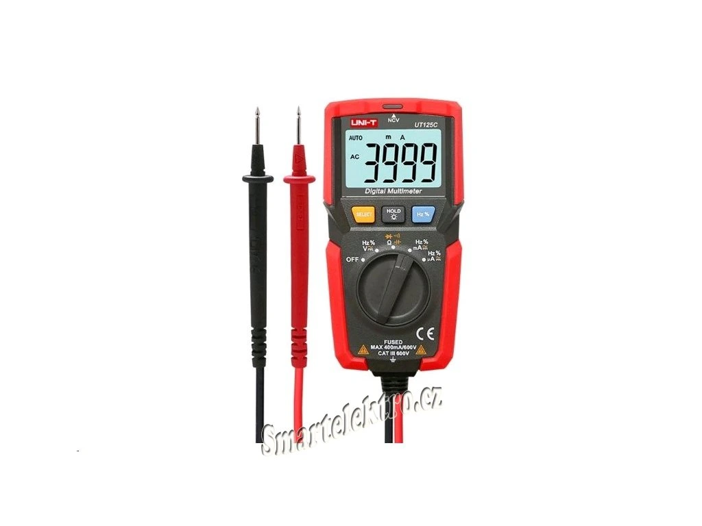 Spolehlivý kapesní multimetr s digitálním displejem, který zobrazí až 4000 číslic. Ideální nástroj pro měření stejnosměrného i střídavého napětí a proudu, odporu, kapacity a spojitosti vedení s ochranou proti přetížení. V této cenové relaci je přístroj navíc vybaven nadstandardními funkcemi, mezi které patří bezkontaktní měření napětí (NCV), měření frekvence a podsvícení displeje. UT125C vyhovuje standartu CAT III 600V a certifikátu cETLus.