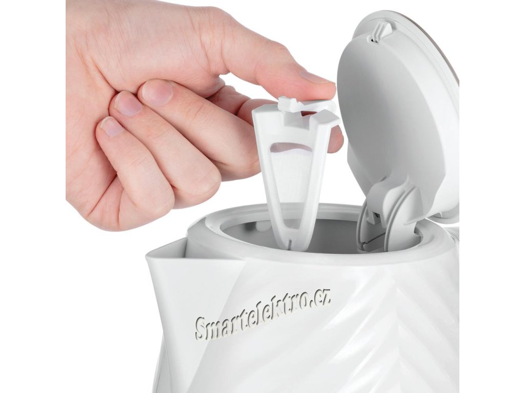 Elegantní rychlovarná konvice s příkonem 2 200 W a objemem 1,7 l. Vyjímatelné filtrační sítko a dvojnásobný bezpečnostní systém.
