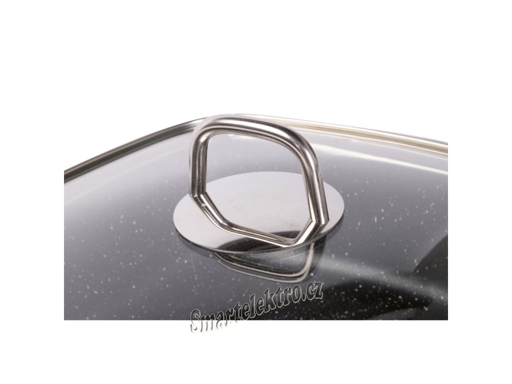 Nepřilnavý materiál bez použití PFOA (nevypařují se žádné toxické látky při přehřátí) teplotně vysoce odolný, zabraňuje připalování, zdravé vaření