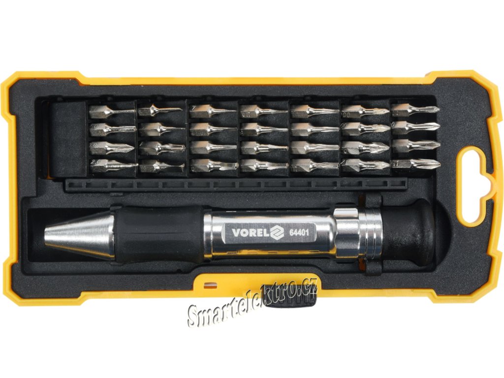 Šroubovák ráčnový s příslušenstvím 29ks vyrobené z kvalitní CrV oceli.
