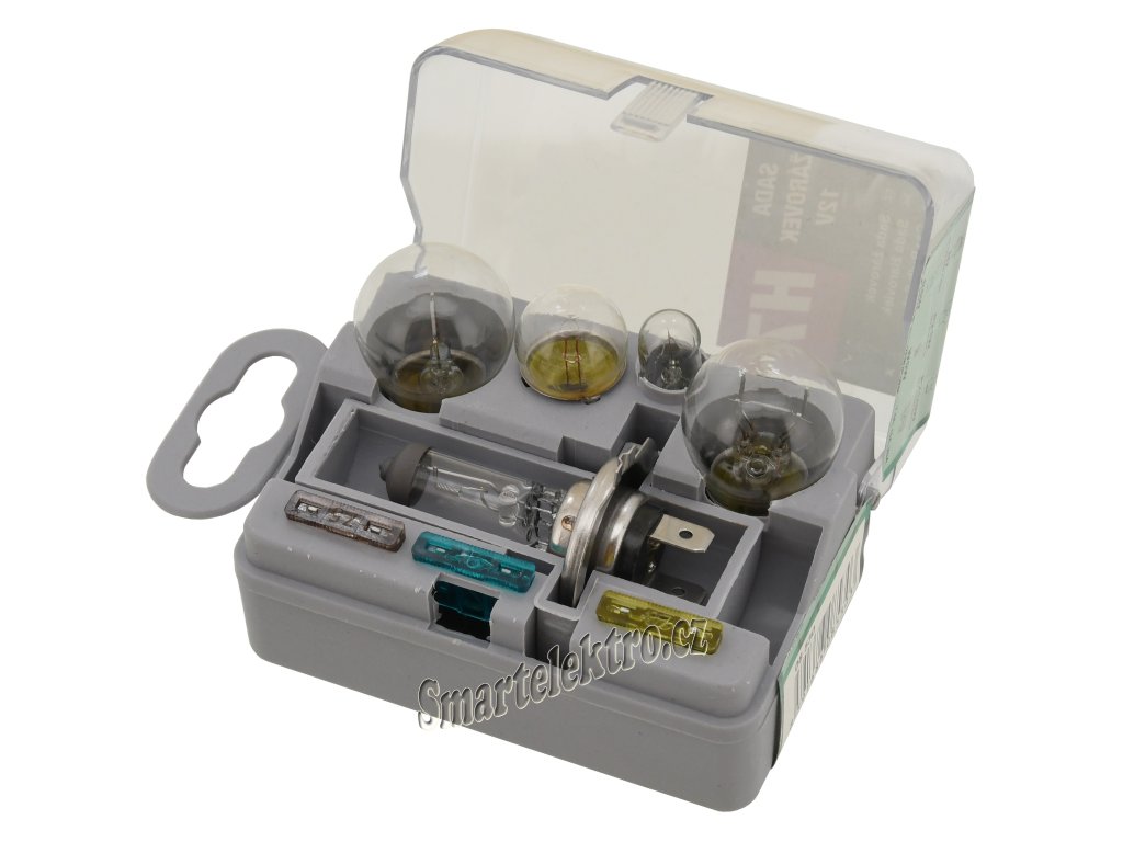 Univerzální servisní sada žárovek a pojistek v plastové krabičce.