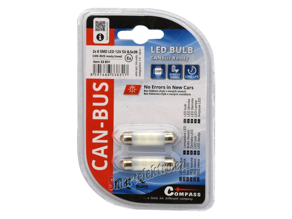 Žárovka 6 LED SMD 12V suf.10X39 SV8.5 NEW-CAN-BUS bílá 2ks