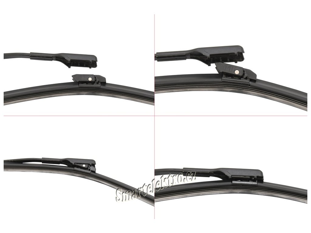 Plochý stěrače FLAT v servisním (průmyslovém) balení, uchycení uzpůsobeno pro daný typ ramena stěrače.