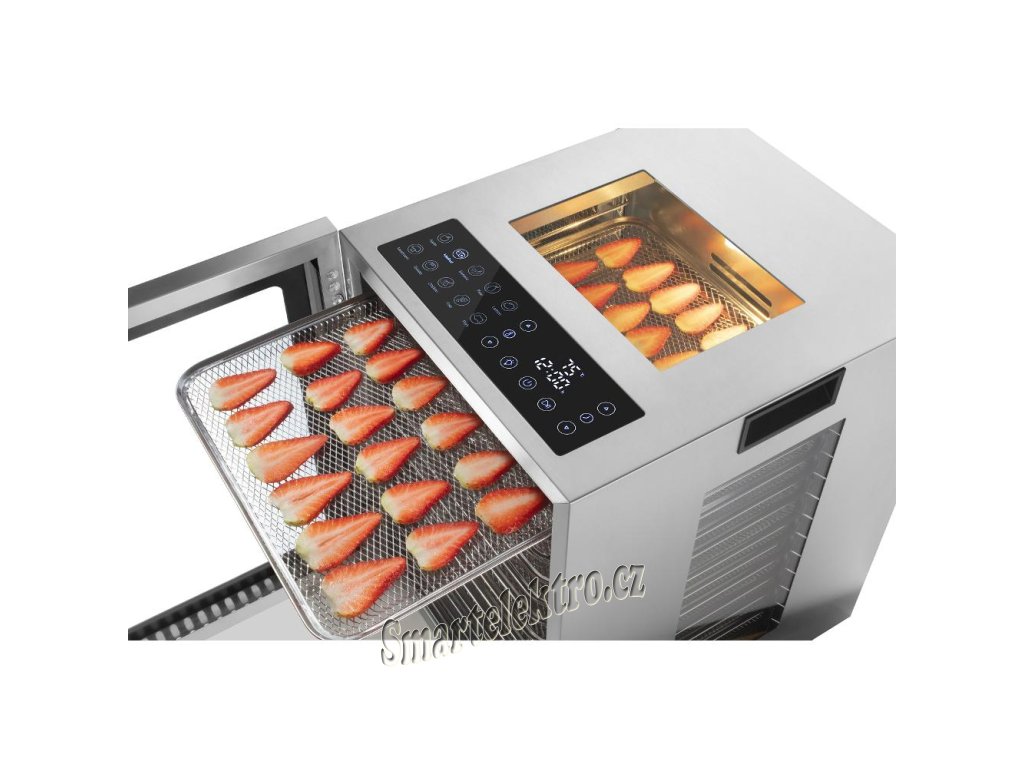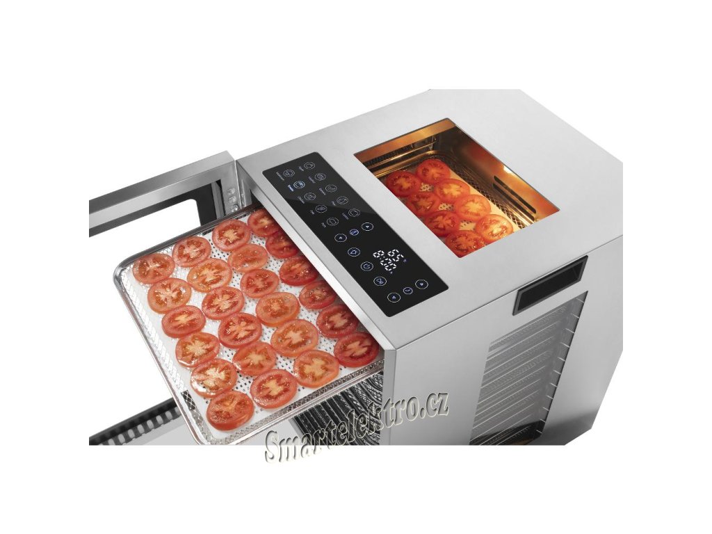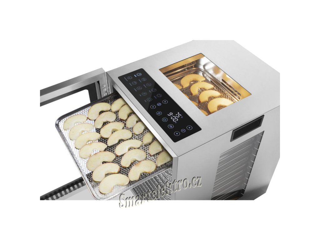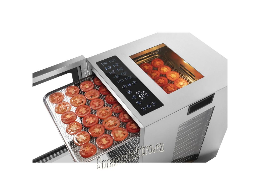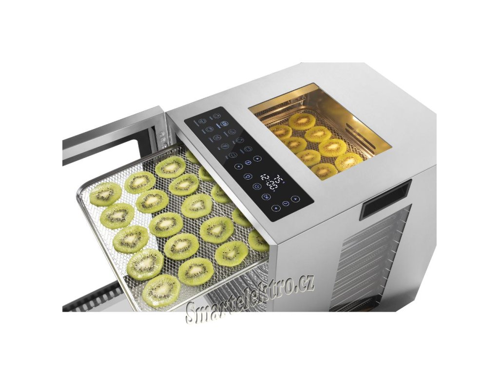 TOTO ZBOŽÍ NELZE ZASÍLAT DO BOXŮ Horizontální nerezová sušička potravin s dvířky, časovačem, 10 sušícími platy a 10 jemnými síty suší ovoce, zeleninu i další suroviny...