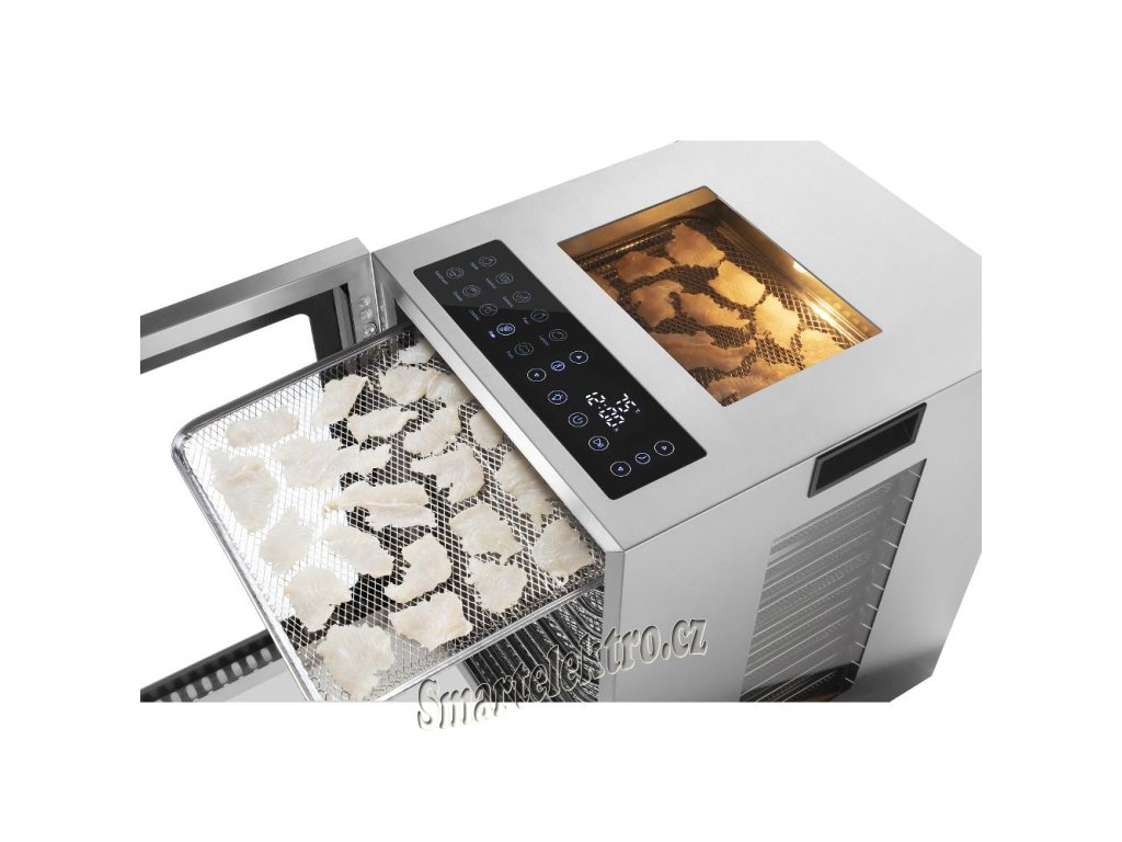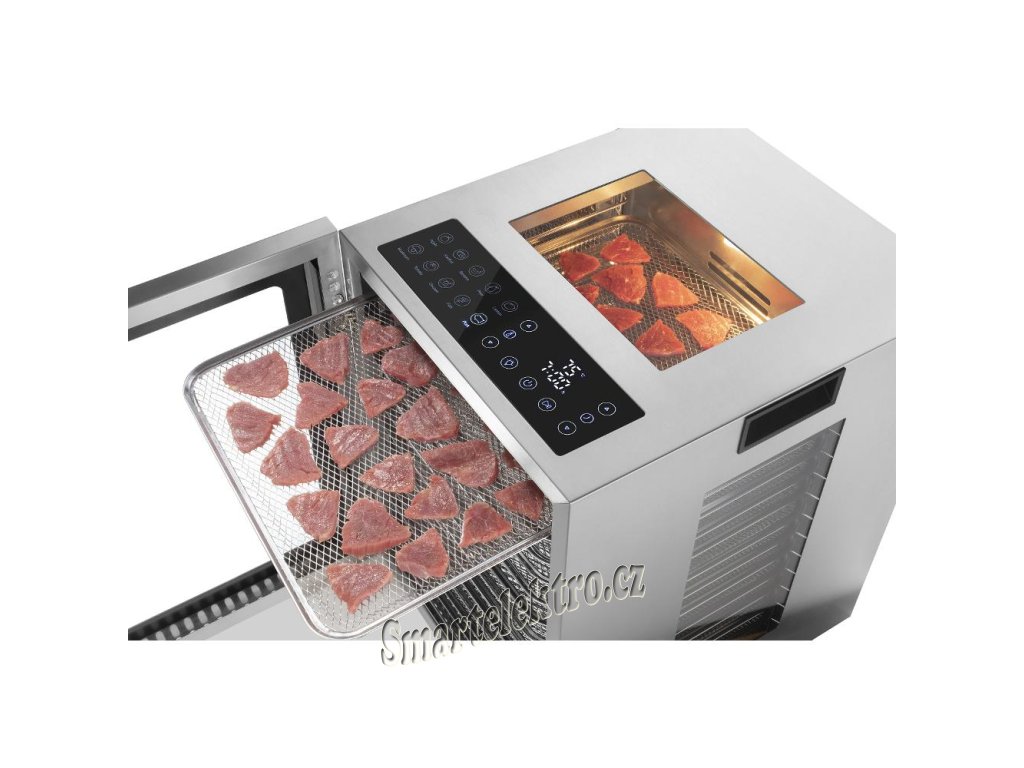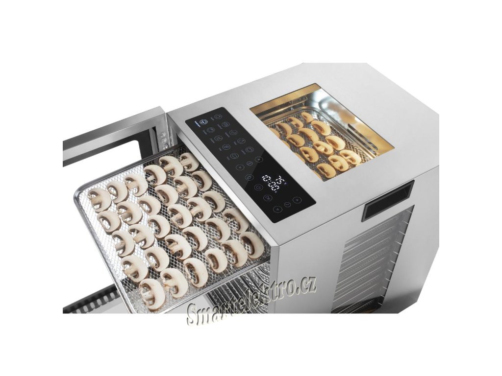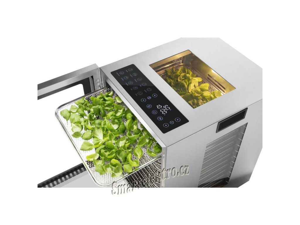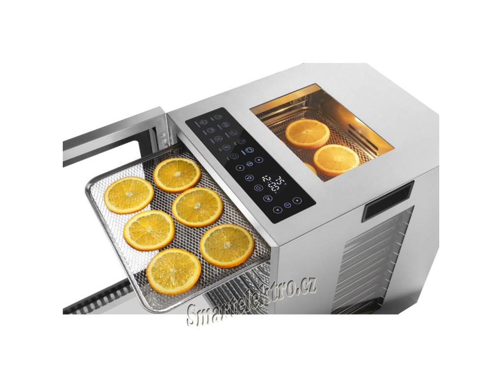 TOTO ZBOŽÍ NELZE ZASÍLAT DO BOXŮ Horizontální nerezová sušička potravin s dvířky, časovačem, 10 sušícími platy a 10 jemnými síty suší ovoce, zeleninu i další suroviny...