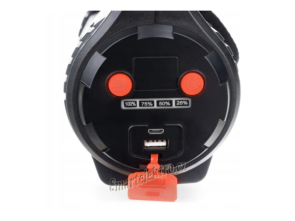 Multifunkční kempingová LED svítilna s rozkládacím tělem, opatřená Li-Ion akumulátorem s funkcí powerbanky.