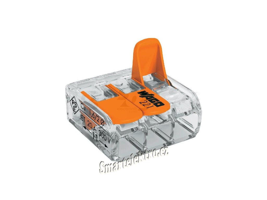 TECHNICKÉ PARAMETRY * Svorka je vhodná pro spojování vodičů v elektroinstalačních krabicích, nahrazuje šroubové svorkovnice tzv. věnečky. Použítí pro vodiče laněné i s plným jádrem. * Počet vodičů : 3 * Průřez vodičů: 0,14 – 4mm2 * Napětí: 450 V * Proud: 32 A * Max. teplota při nepretržitém provozu 85 °C * Balení: 50 ks