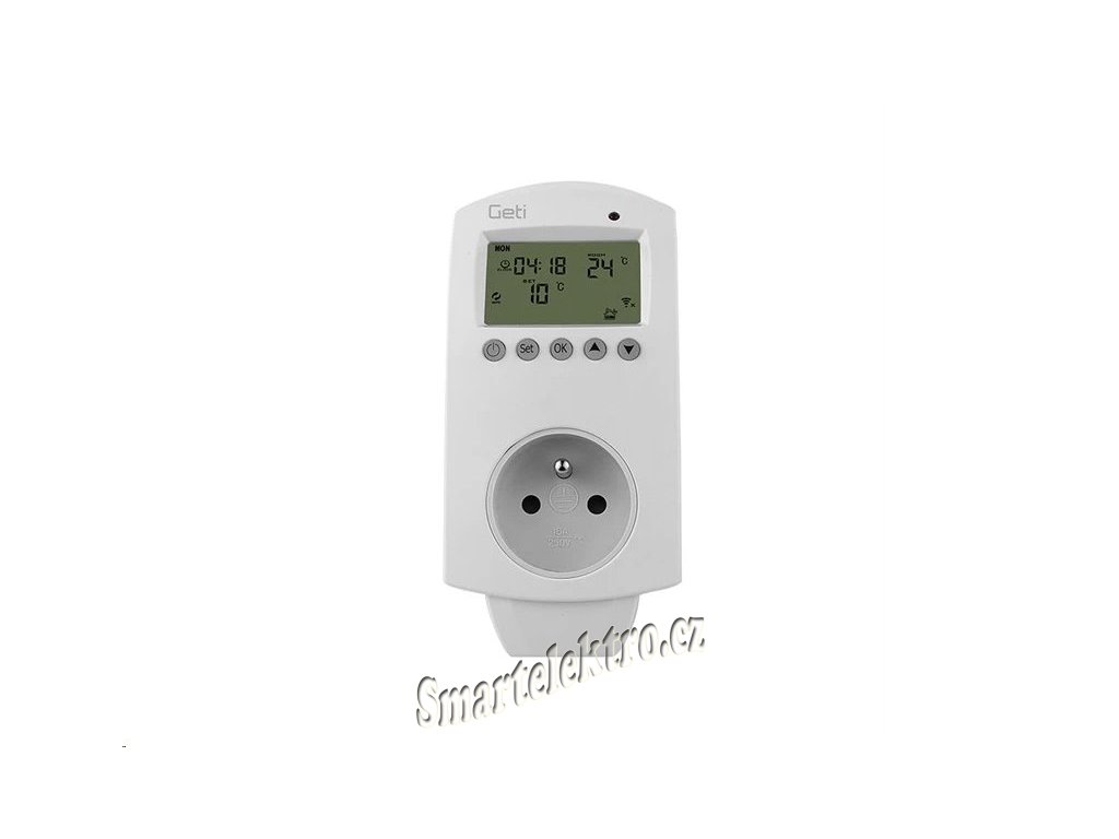 Termostat ovládá napájení připojeného zařízení přes výstupní zásuvku podle nastaveného programu a umožňuje tak komfortní a energeticky úsporné řízení teploty.