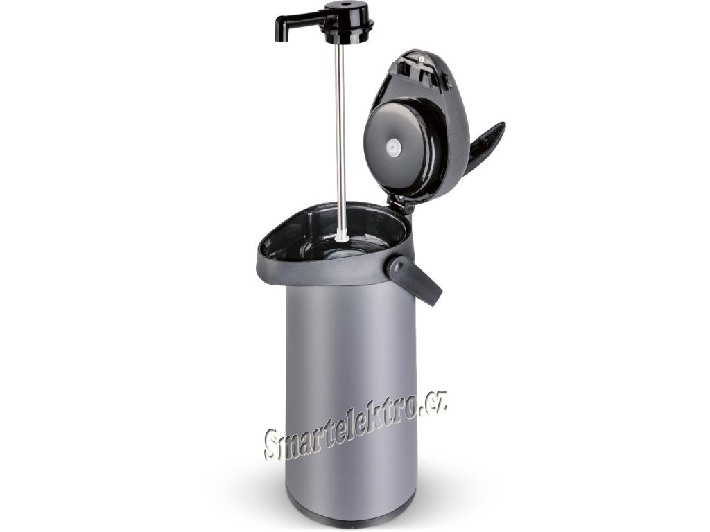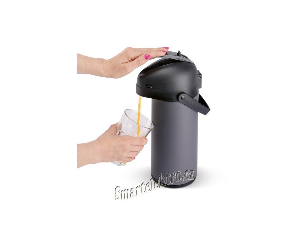 Termoska s dávkovací pumpičkou vyrobena z vysoce odolného plastu s vnitřní skleněnou vložkou.Vložka má termoizolační vlastnosti pro udržení teplého i studeného nápoje.Se sklopným držadlem pro snadné přenášení.