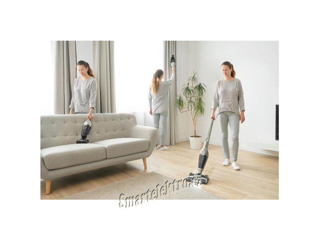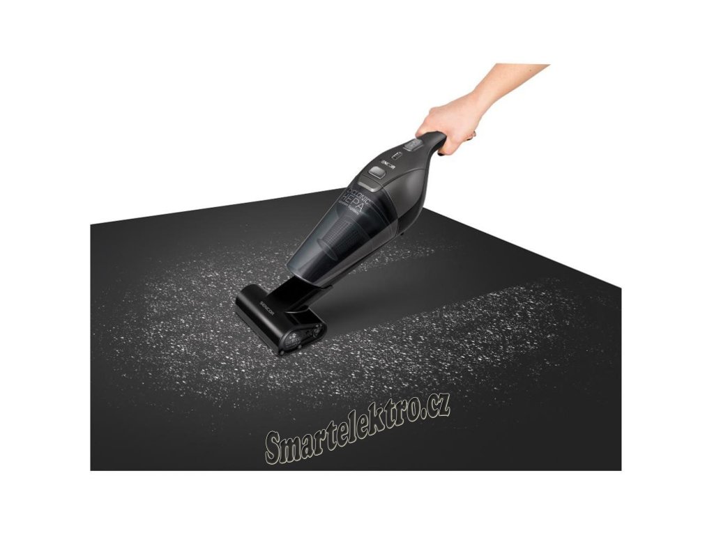 Lehký a snadno ovladatelný tyčový vysavač 4v1 SENCOR SVC 0618TI o hmotnosti 2,5 kg je vyroben z lehkých materiálů a manipulace s ním během vysávání je velmi pohodlná díky nízké váze, ergonomické rukojeti a otočné hubici s rozsahem 180°. Stane se vaším oblíbeným pomocníkem při každodenním úklidu jakéhokoliv povrchu i těžko dostupných míst .Mopovací funkce zajistí perfektně čisté tvrdé podlahy. Cyklónový filtrační systém s HEPA filtrem zbavuje vypouštěný vzduch až 99,9 % bakterií a alergenů, což ocení zejména citlivé osoby trpící na různé alergie. Vysavač je dobře skladný a vždy bude připraven k práci. Dobíjecí základna s integrovaným držákem pro uložení příslušenství má LED indikátor nabití baterie. Baterie s vysokou kapacitou 2 000 mAh zvládne na jedno nabití pracovat nepřetržitě až 40 min. V dobíjecí základně se vysavač plně nabije za 4–6 hod.