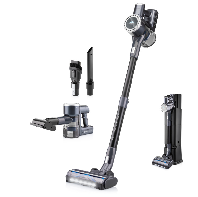 Vysavač ETA Panther PRO spojuje sílu klasického vysavače s lehkostí ručního, takže si hravě poradí s běžným úklidem i rychlým zásahem během dne. O spolehlivý výkon se stará digitální BLDC motor o příkonu 450 W s dlouhou životností a vyjímatelná Li-Ion baterie s kapacitou 2500 mAh, která zajistí až 60 minut provozu na jedno nabití. Po zhruba 5,5 hodinách nabíjení je pak znovu připraven k akci. Jeho používání rozhodně zpříjemní odsávací stanice s funkcí samočištění a automatického nabíjení.