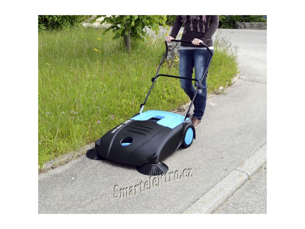 Mechanický úklidový stroj, určený k zametání prachu nebo drobných nečistot ze středně velkých suchých/rovných ploch - hal, chodeb, teras, vjezdů, dvorů apod. Účinný zametací systém (→ 2 podávací rotační kartáče, 2 sběrné válcové kartáče), centrální nastavení přítlaku kartáčů pomocí seřizovacího šroubu. Konstrukce: korpus stroje z tvrzeného plastu, nylonové kartáče s dvojitým řemenovým pohonem, sklopná vodicí rukojeť, 33 l sběrná nádoba s madlem, velká pojezdová kola s gumovým běhounem pro maximální přilnavost k hladkým povrchům (→ průměr: 250 mm). Obvyklá pracovní rychlost: 4 km/hod., běžně dosažitelný plošný výkon: 3.200 m2/hod., délka/průměr sběrných válců: 450/160 mm.