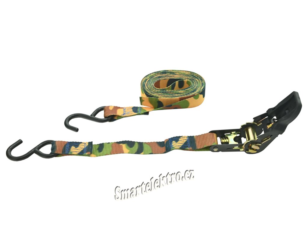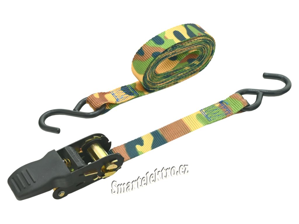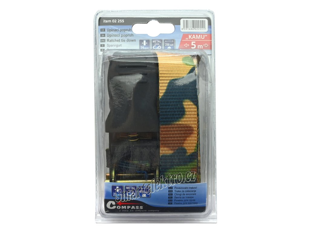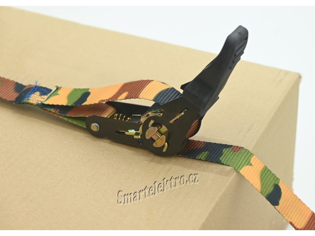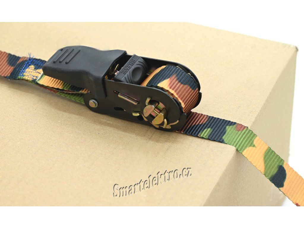 Popruh s kamufláží má šíři 25 mm, délku 5 m a vyznačuje se tažnou silou 250daN.
