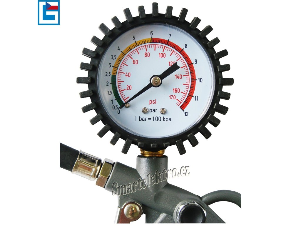 Spolehlivá hustilka pneumatik, určená k plnění pneumatik jízdních kol/motocyklů/osobních automobilů apod. v podmínkách garáží, domácích dílen atd. Konstrukce: rukojeť/korpus hustilky z tlakově litého hliníku, manometr Ø 60 mm s gumovou ochranou, ventil pro odpouštění nadměrného tlaku, ventilová zástrčka Michelin. Příslušenství: vsuvka ¼“.
