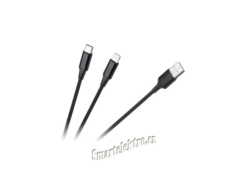 Kabel USB A zástrčka - USB C zástrčka/Lightning zástrčka (2v1) 1m