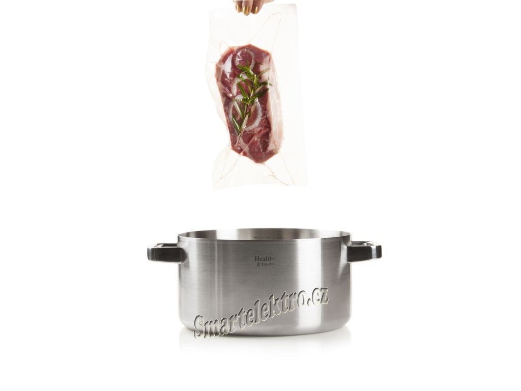 Dodávané silnostěnné fólie jsou vyrobeny z vysoce kvalitního materiálu bez obsahu BPA a jiných škodlivých látek a lze je tak bez obav používat při pomalém vaření Sous Vide i pro ohřev v mikrovlnné troubě. Připravené sáčky můžete také používat opakovaně. Vakuovačka obsahuje také hadičku pro odsávání vakuových nádob a k tomu příslušnou funkci umožňující automatické odsávání vakuových nádob.