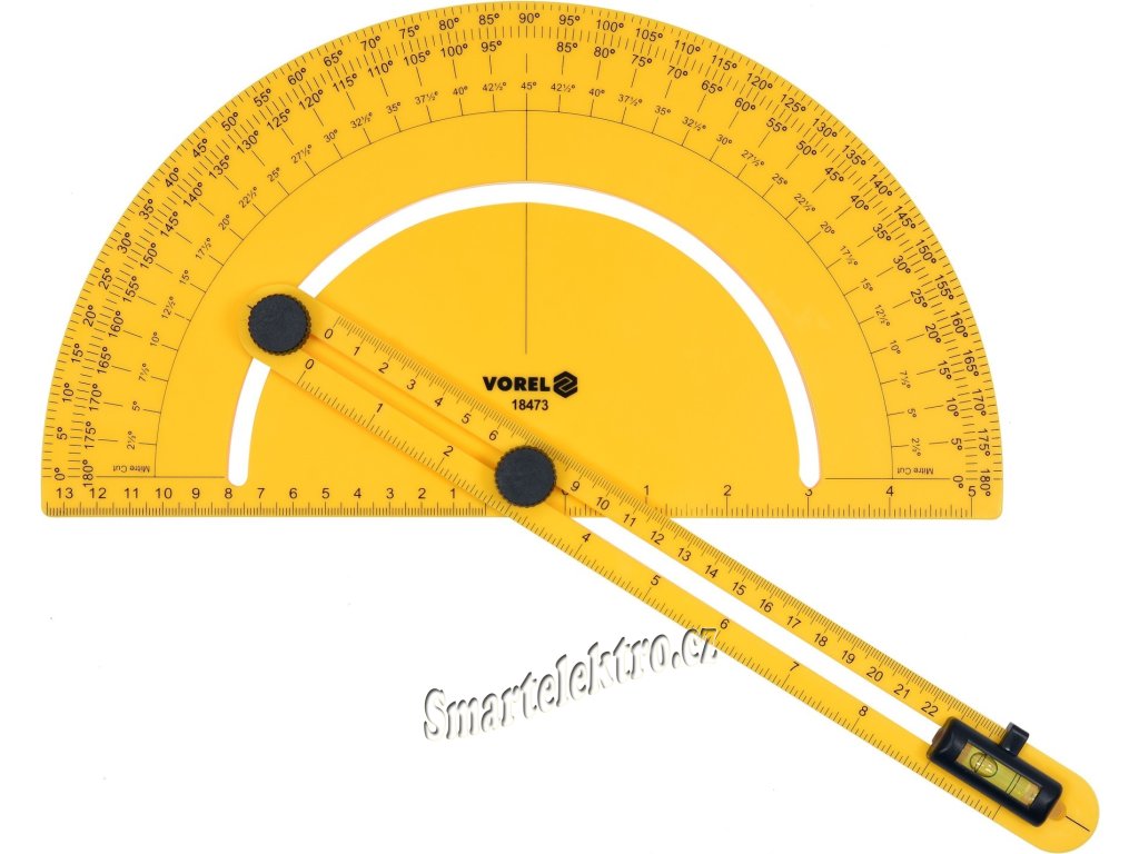 Úhloměr s pohyblivým ramenem délky 250 mm, zajištěným šrouby.