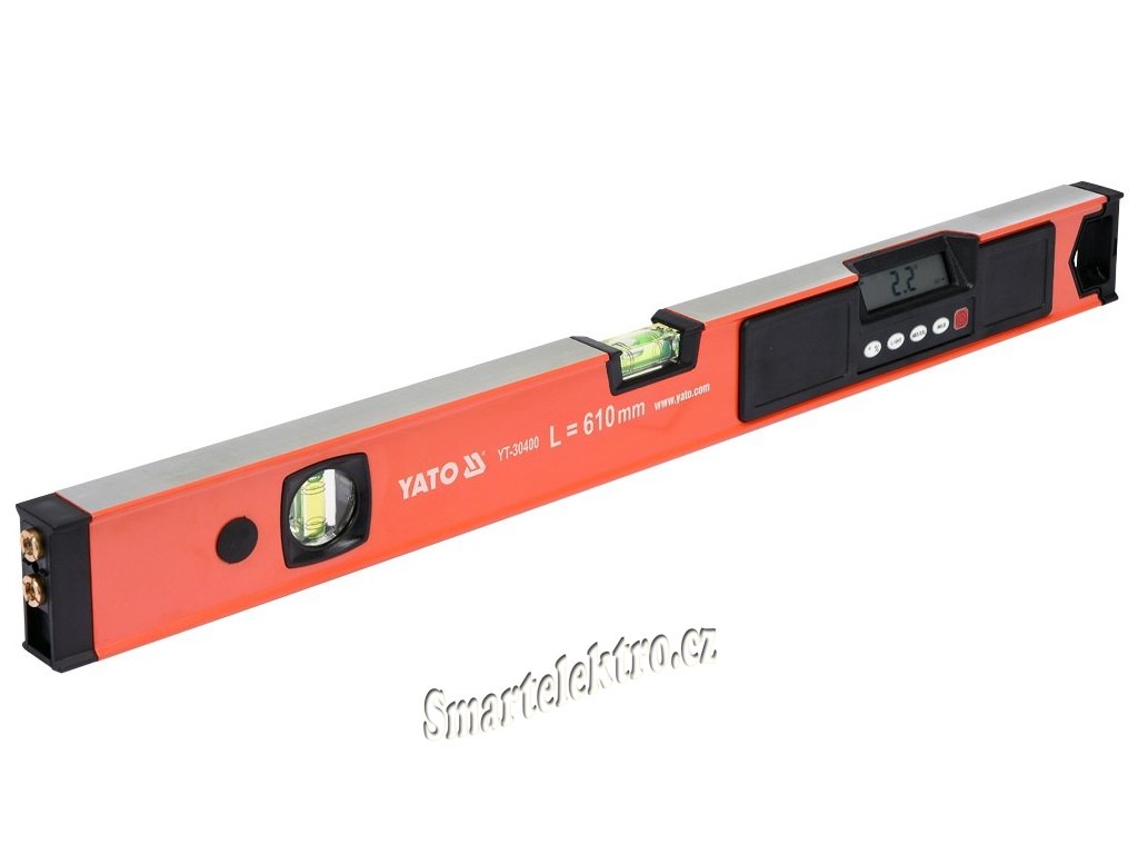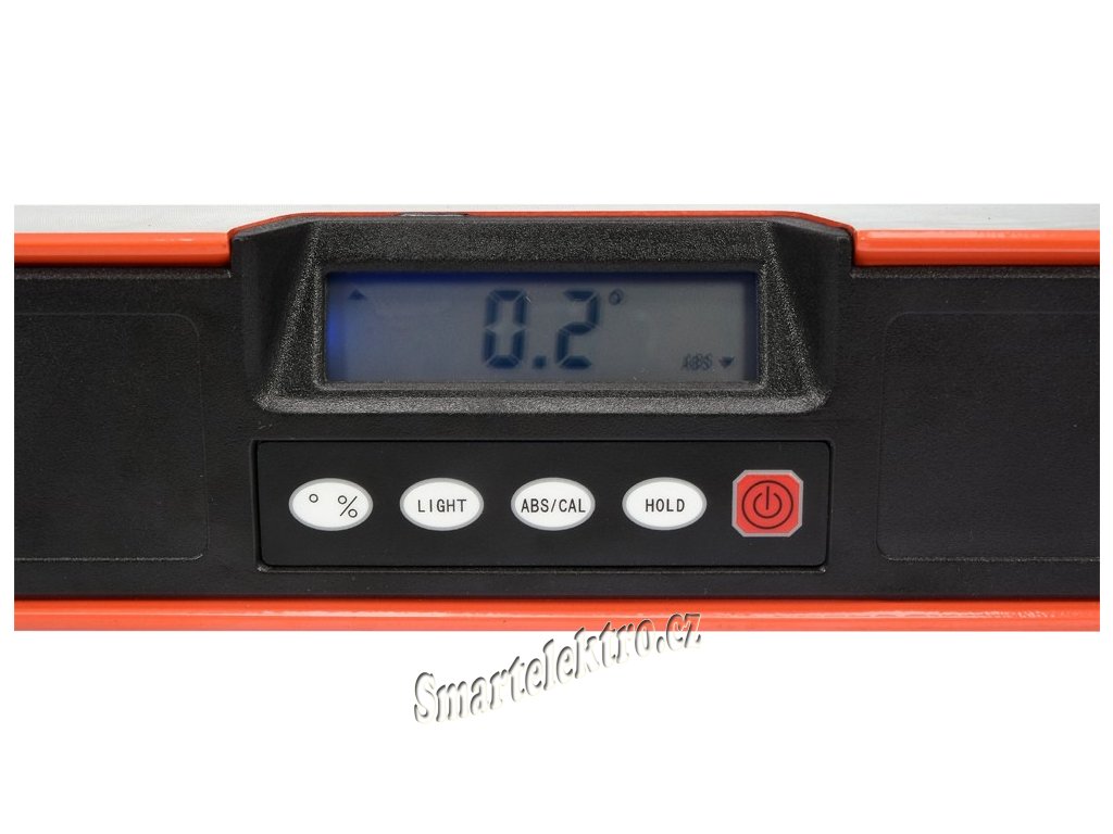 Hliníková elektronická vodováha s vestavěným laserem pro měření na vzdáleností do 20 m.