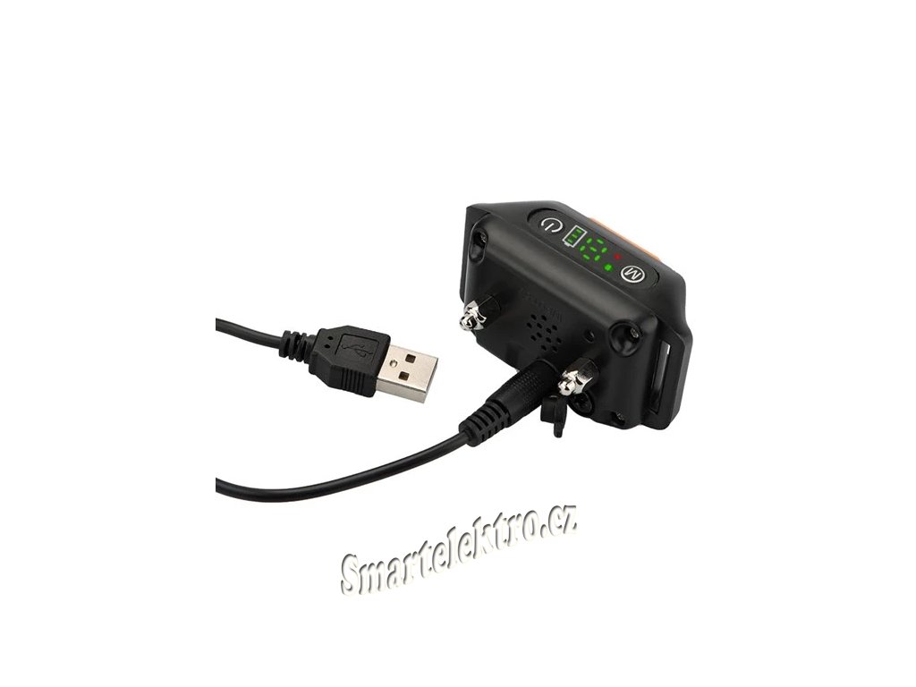 Obsah balení: výcviková jednotka, nastavitelný obojek, USB kabel, sada kontaktních hrotů + silikonové krytky, testovací doutnavka, návod