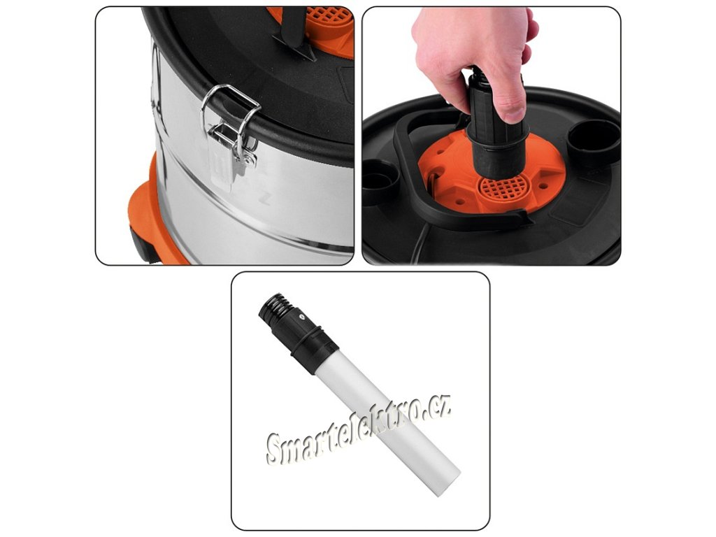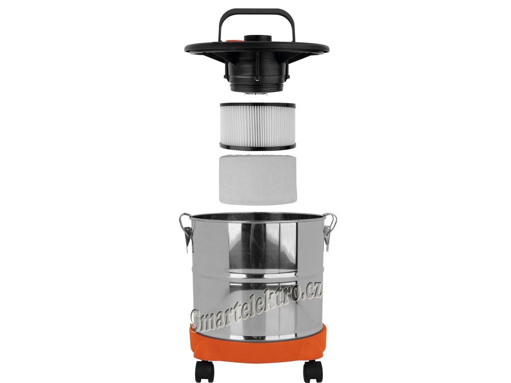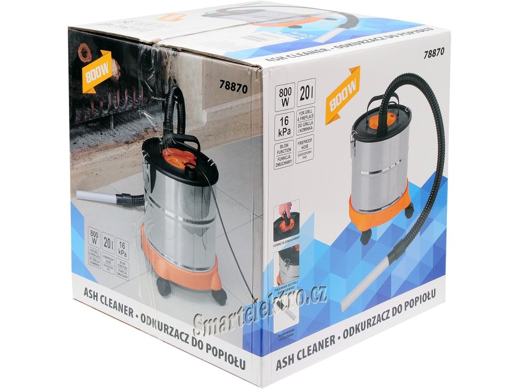 Sací hadice je tepelně odolná a je zakončena hliníkovou sací hubicí. Nádoba na popel je vyrobena z nerez oceli a její objem činí 20 litrů.