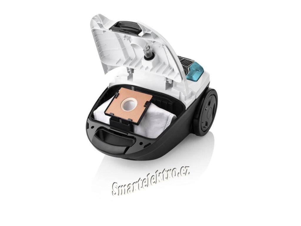 Vysavači nechybí ani signalizace plnosti prachového sáčku a ergonomicky tvarovaná rukojeť. Díky akčnímu rádiu až 8 metrů nemusíte kabel přepojovat v každé místnosti. Otočné 360° kolečko navíc umožňuje pohyb všemi směry. Překvapí vás i relativně nízká hlučnost 73 dB(A).