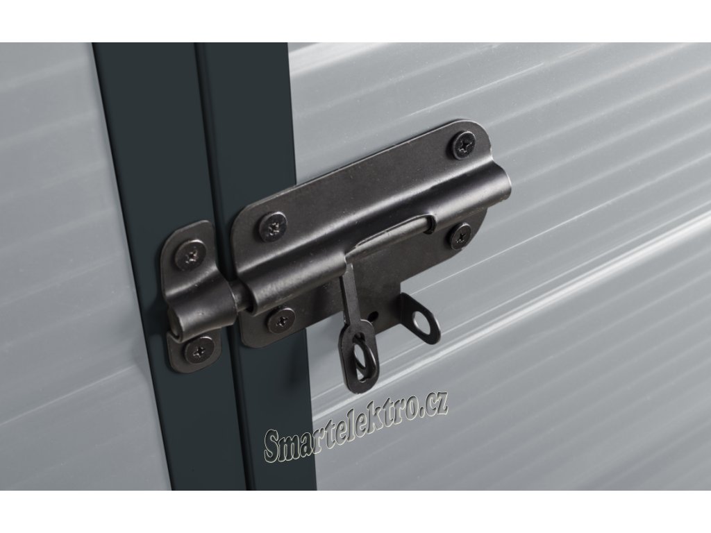 Nad dvoukřídlými dveřmi je umístěna ventilační mřížka, která zajišťuje dostatečné odvětrávání a cirkulaci vzduchu uvnitř domku. Proto se nemusíte bát plísní nebo srážení vody na stěnách v případě náhlých změn teploty.