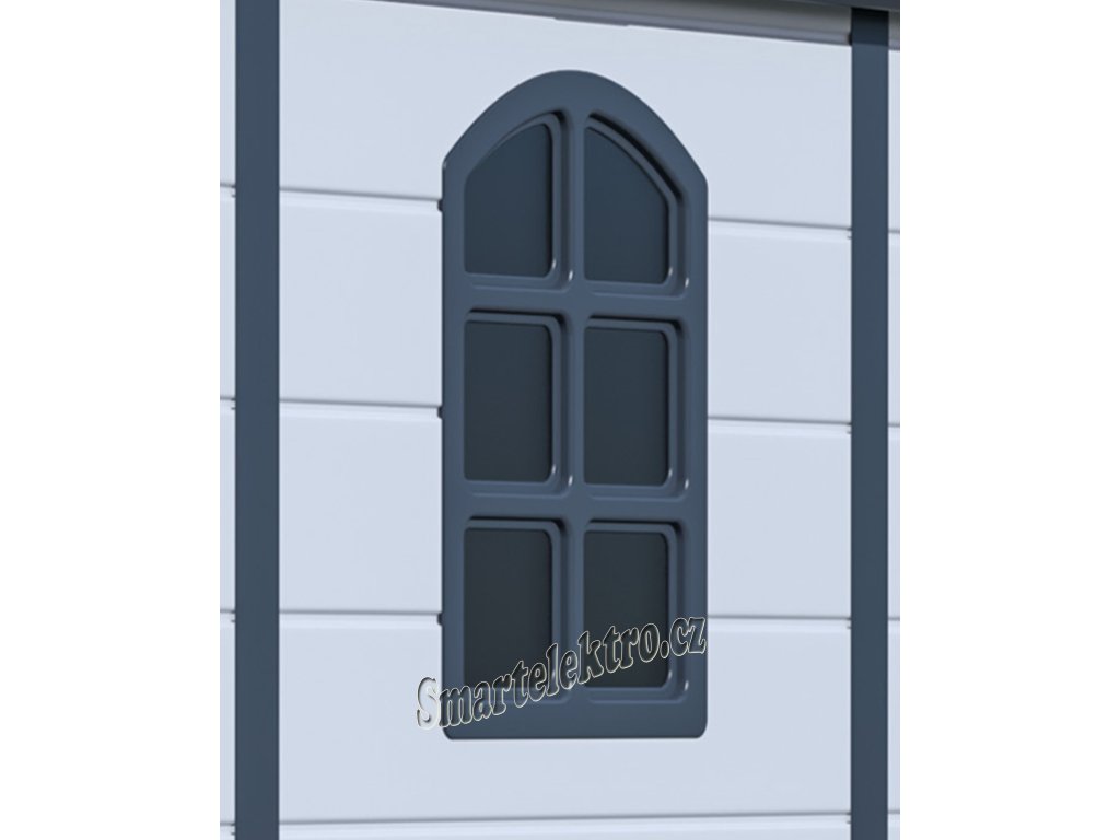 V žádném pořádném zahradním domku nesmí chybět okénko. Ani u toho našeho nechybí, navíc si je můžete umístit kam chcete. Neomezujte se kvůli dostatku světla a nerozmýšlejte se, zda domek postavit ke zdi domu, nebo do volného prostoru. Dostatečné množství světla vás nebude limitovat. Okno si jednoduše umístěte na pravou nebo levou stranu domku, podle aktuální potřeby.