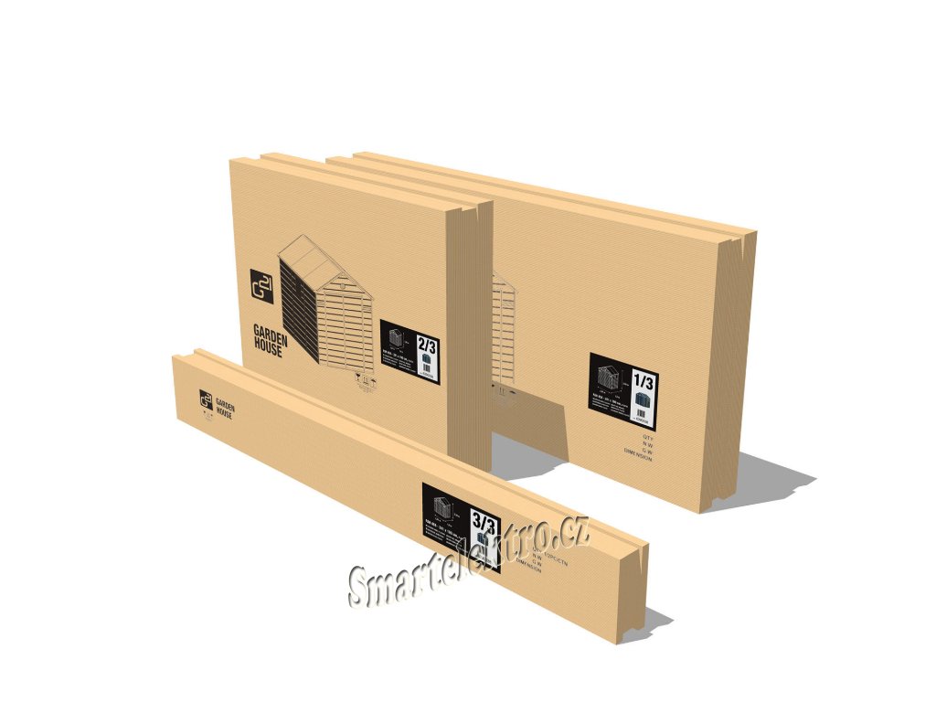 - Krabice č. 1: 192 x 94 x 16 cm, 36,5 kg