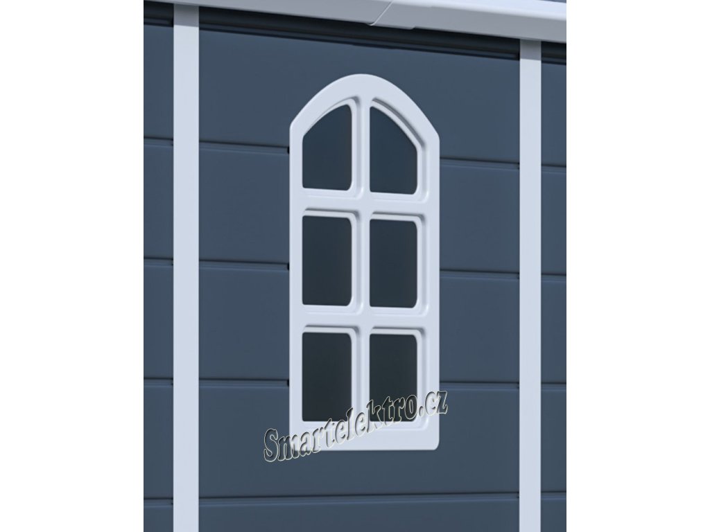 V žádném pořádném zahradním domku nesmí chybět okénko. Ani u toho našeho nechybí, navíc si je můžete umístit kam chcete. Neomezujte se kvůli dostatku světla a nerozmýšlejte se, zda domek postavit ke zdi domu, nebo do volného prostoru. Dostatečné množství světla vás nebude limitovat. Okno si jednoduše umístěte na pravou nebo levou stranu domku, podle aktuální potřeby.