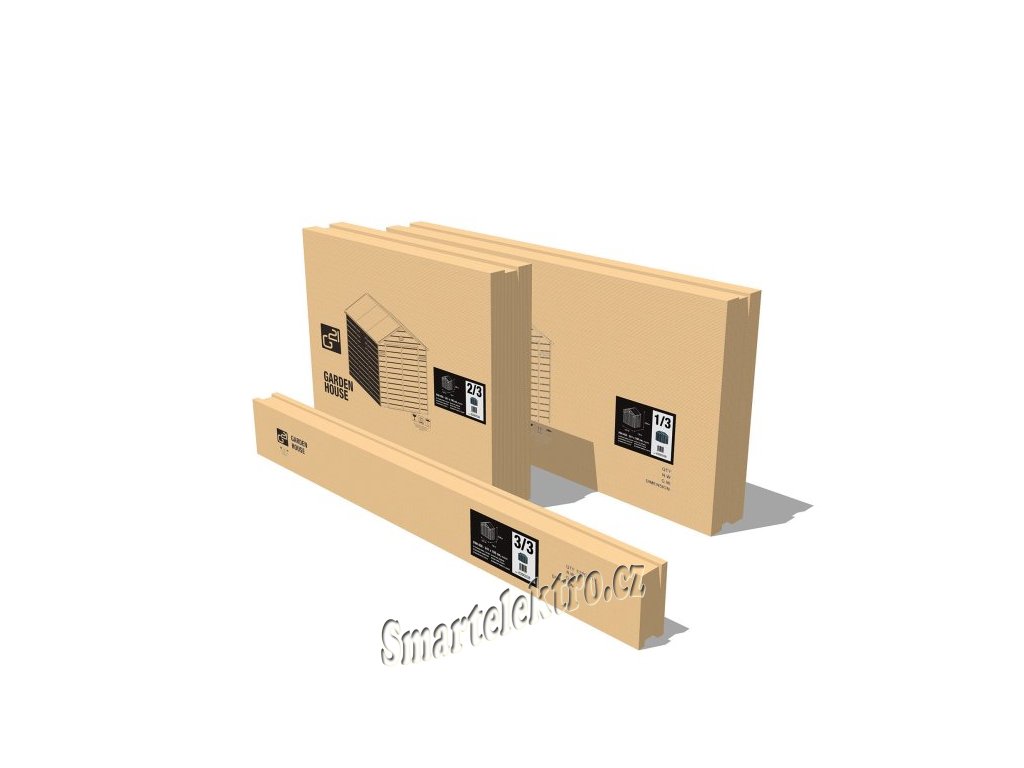 - Krabice č. 1: 192 x 95 x 16 cm, 37,5 kg