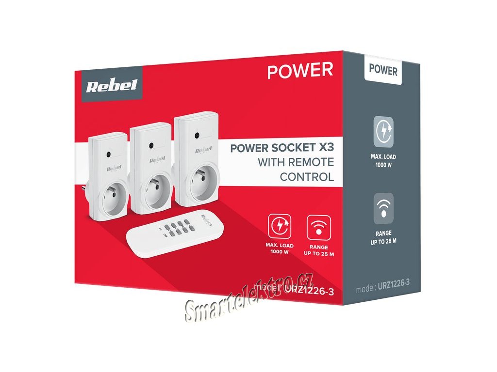 Zásuvky bezdrátové s dálkovým ovládáním REBEL URZ1226-3 3+1