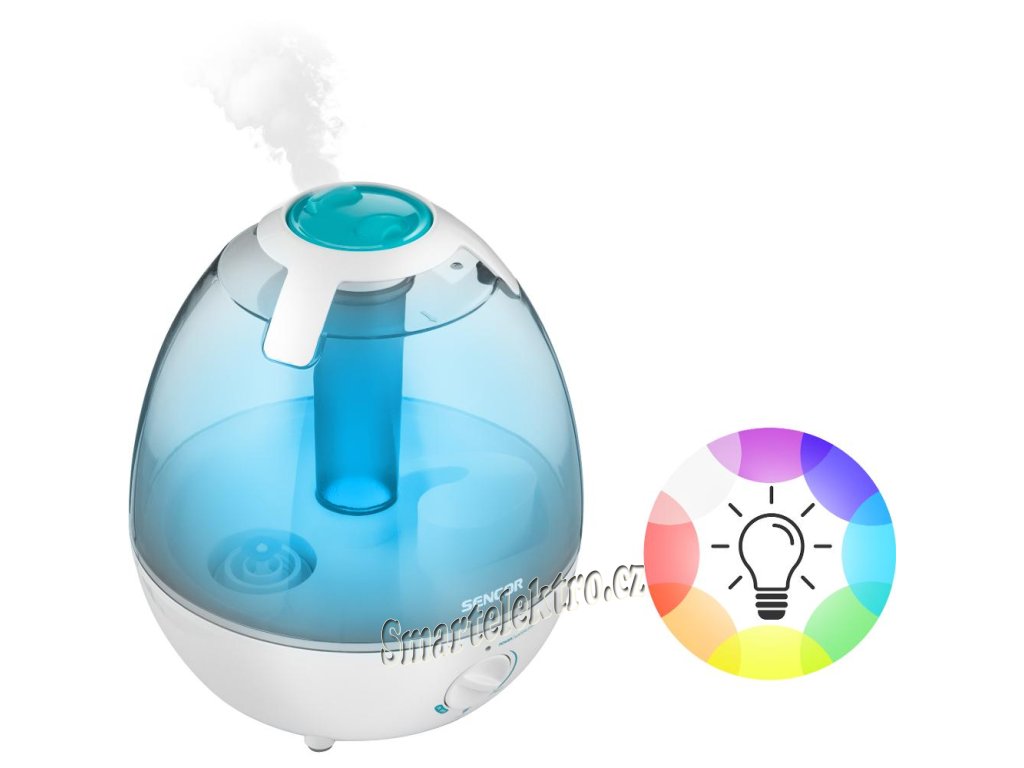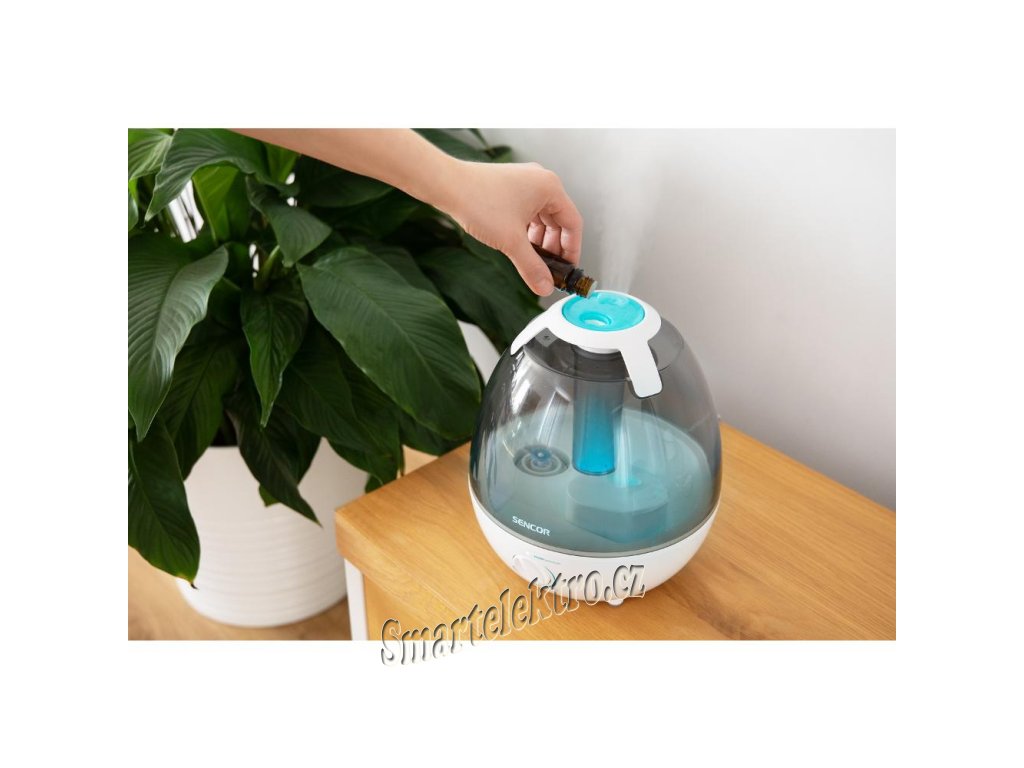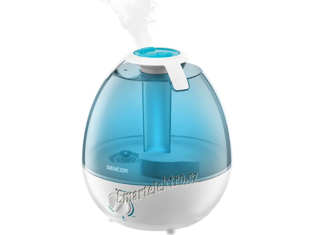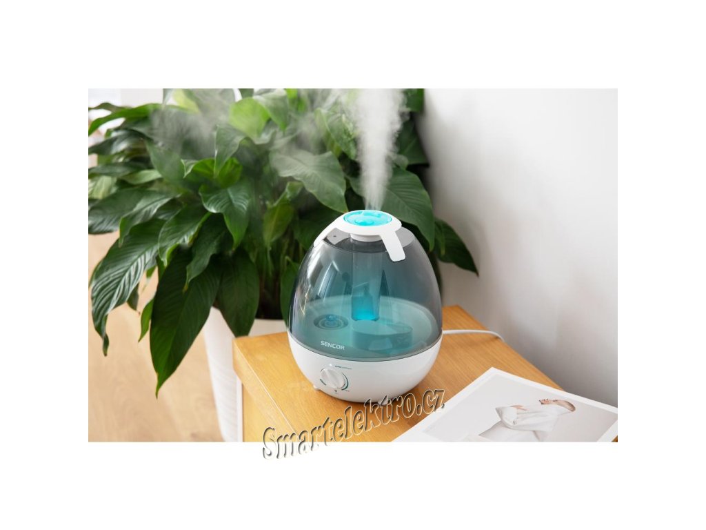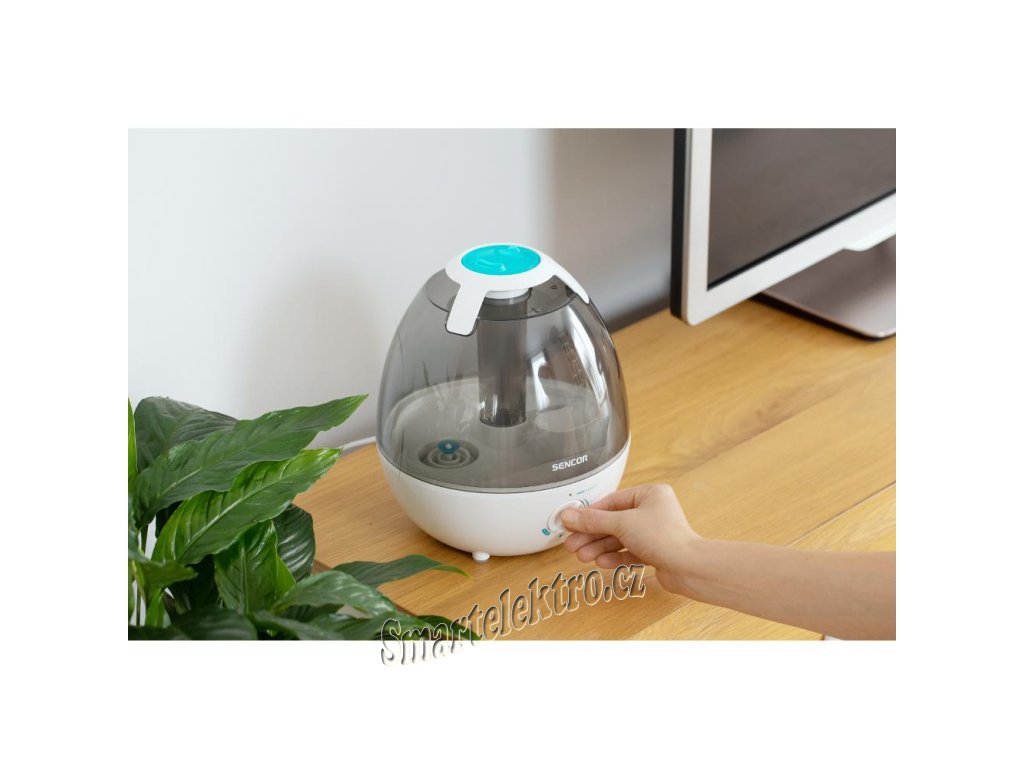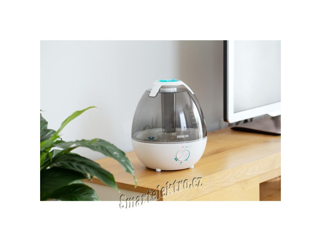 Ultrazvukový zvlhčovač vzduchu Sencor, příkon 12 W, doporučená plocha místnosti do 18 m², objem nádrže 0,9 l, doba provozu 14 hodin, 2 rychlosti, studená pára m